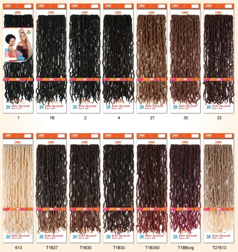 Braiding Hair › 3X Boho Mermaid Locs 24" Image 1 of 2 Image 2 of 2 3X Boho Mermaid Locs 24" $0.00 AVAILABLE COLORS1 1B 2 27 30 33 4 613 T1B27 T1B30 T1B33 T1B350 T1BBG T27613 Add To Cart Added! AVAILABLE COLORS1 1B 2 27 30 33 4 613 T1B27 T1B30 T1B33 T1B350 T1BBG T27613 You Might Also Like Dominican Deep Wave 22" 2X Boho Gypsy Locs 22" Yaki Ponytail Braid 3X Yanky Crochet Twist 12" 2X Boho Butterfly Locs 14"